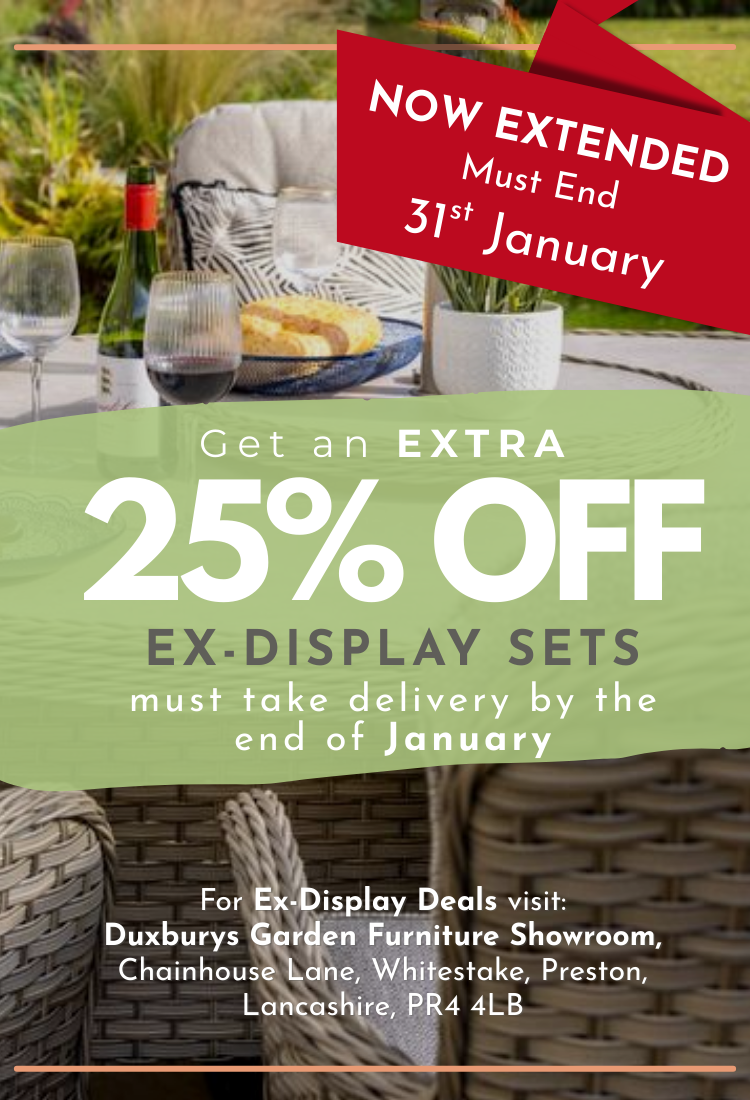 Duxburys Garden Furniture Showroom is just off the M6, M61 and M65 Preston.