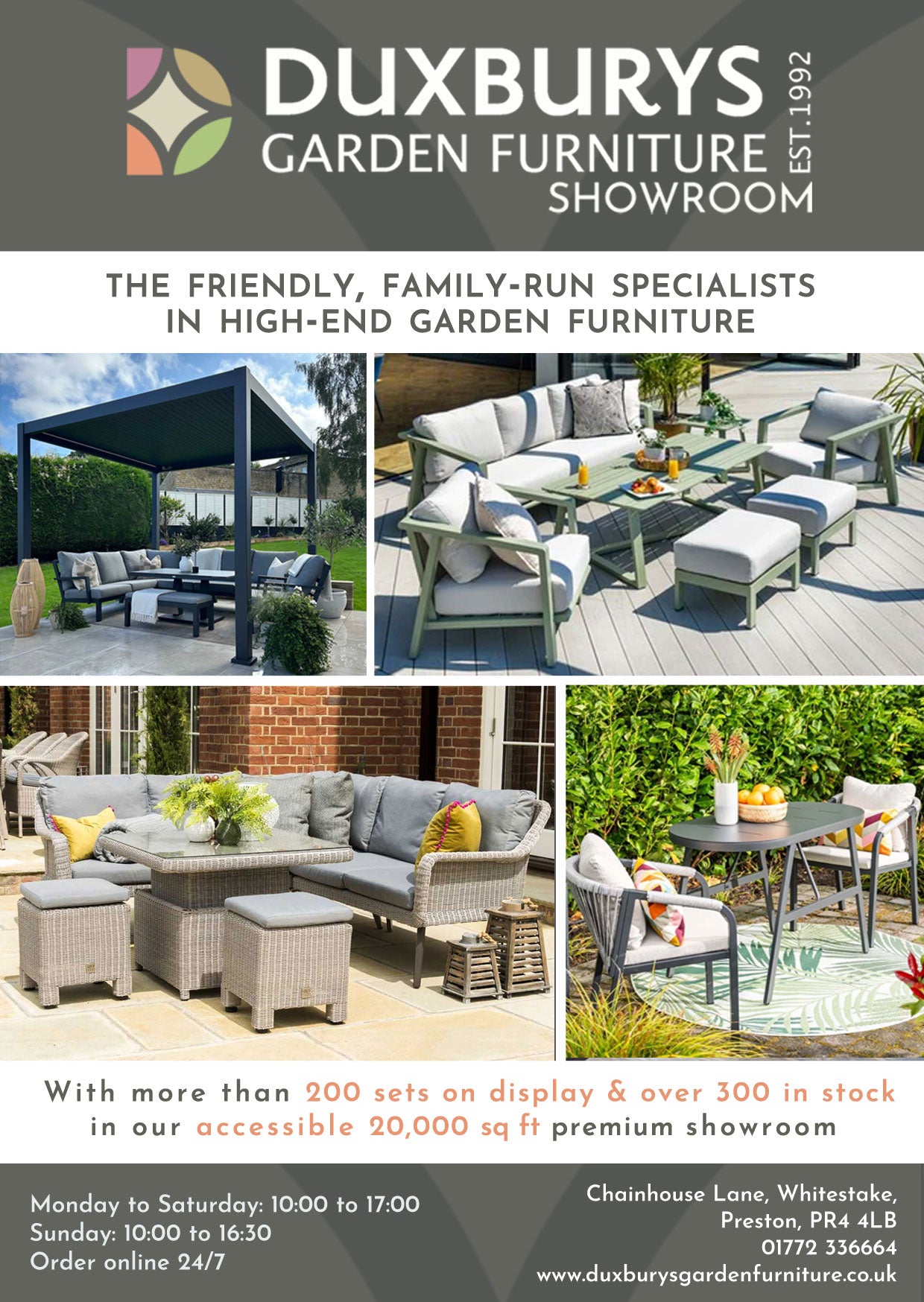 Duxburys Garden Furniture Showroom is just off the M6, M61 and M65 Preston.