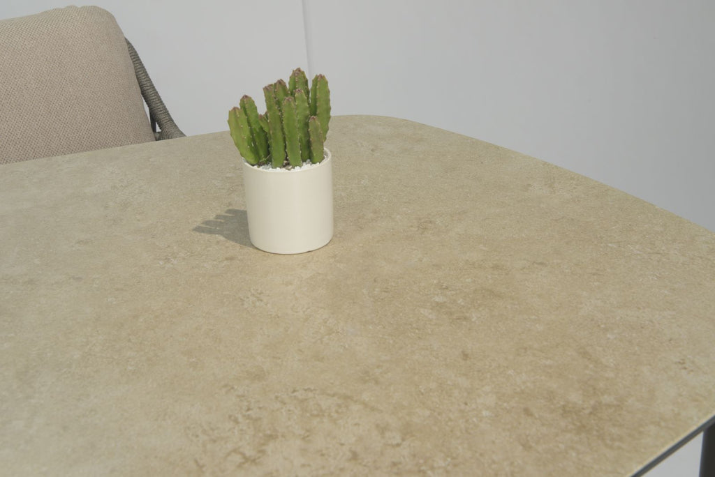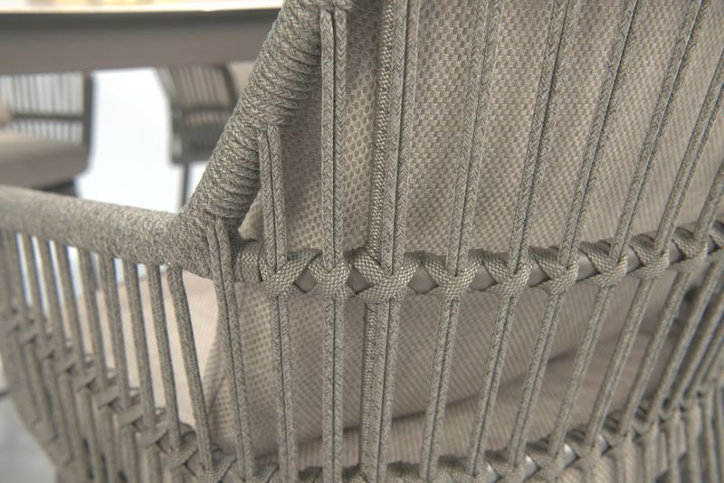 The Alicante dining chairs feature a beautifully hand-woven rope weave, supportive curved backs and deep, quick-dry cushions—perfect for relaxed family meals or entertaining guests. Their Terre colour palette blends effortlessly with both natural garden landscapes and modern patios.