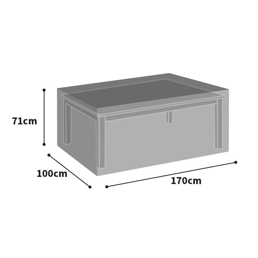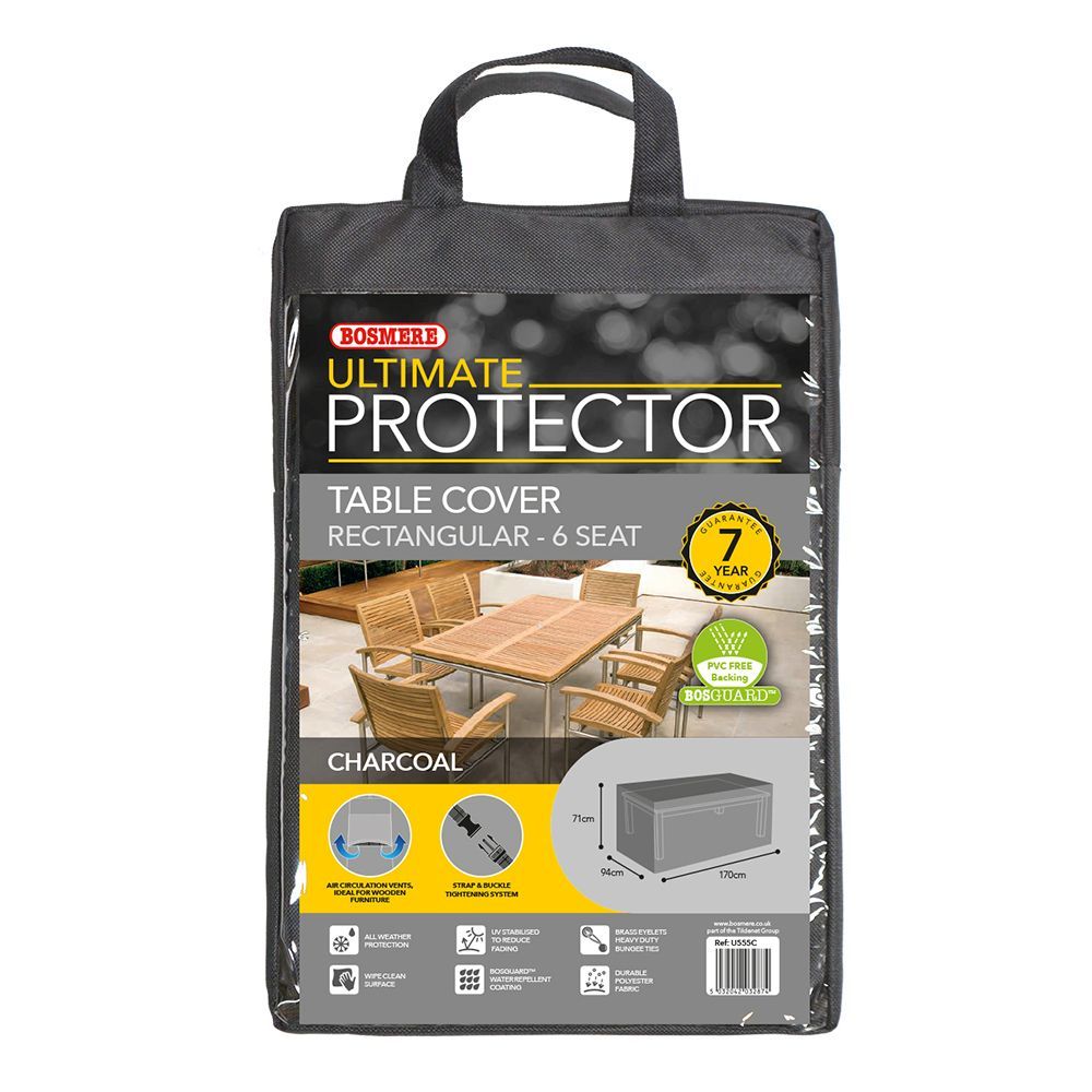 Crafted with a seven-year warranty, this water-repellent charcoal-coloured outdoor furniture cover boasts air circulation vents, a strap-and-buckle tightening system, a wipe-clean surface, and durable polyester fabric, as well as brass eyelets and heavy-duty bungee ties for all-weather protection.