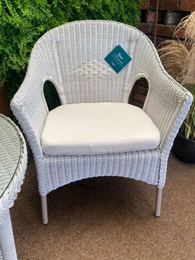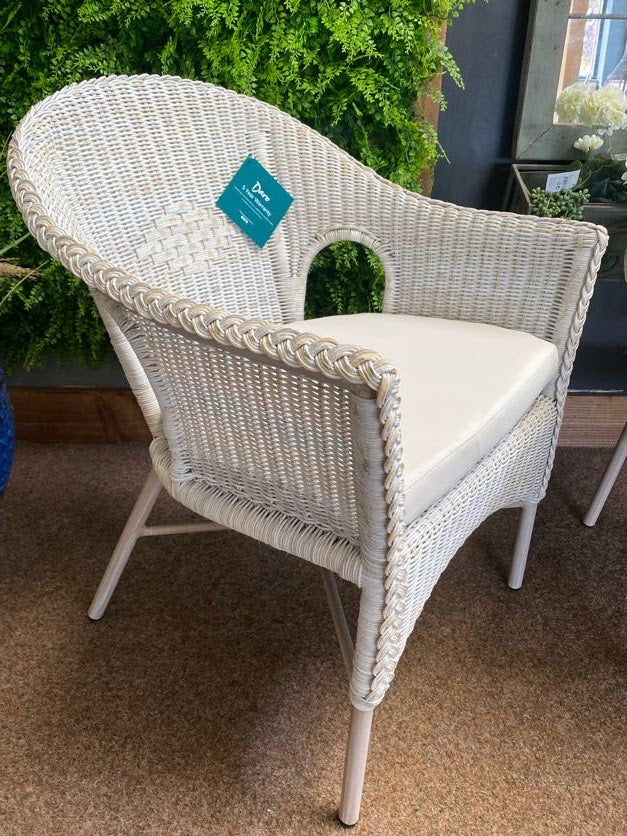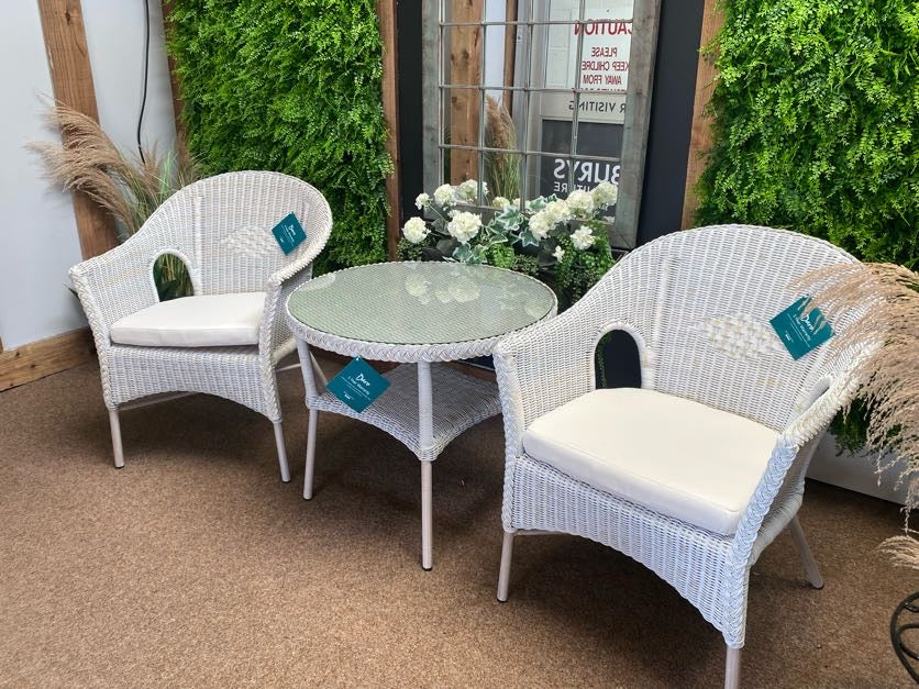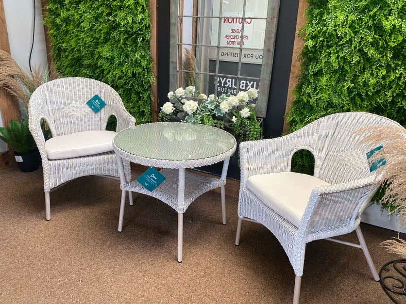 A timeless, practical and elegant design ideal for smaller gardens or terraces. The Cebu Bistro Set (with pads) has been handcrafted in a Antique White Wash 3mm Vintage Lace weave, adding a touch of “shabby chic” to your patio, veranda or balcony.