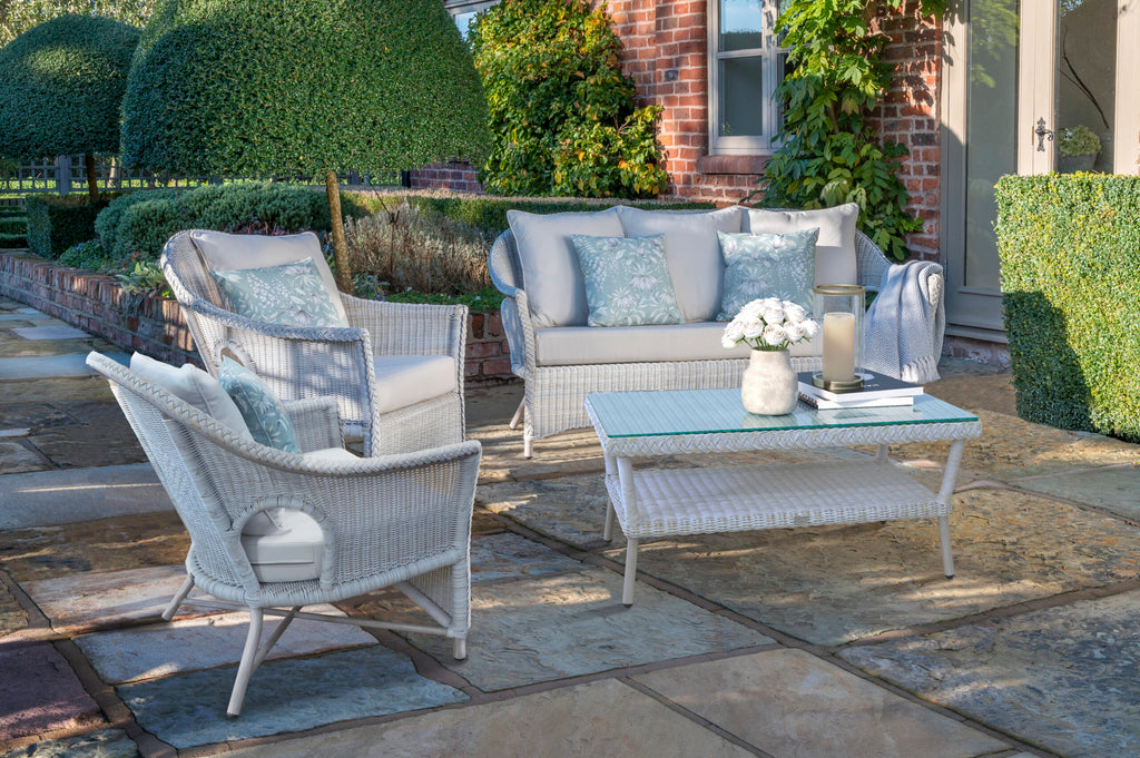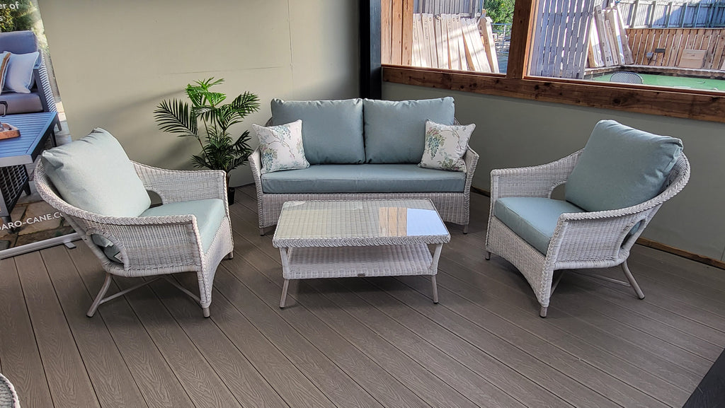 Cebu Lounging Set has been handcrafted in an Antique White Wash Vintage Lace weave, adding a touch of “shabby chic” to your patio or veranda.