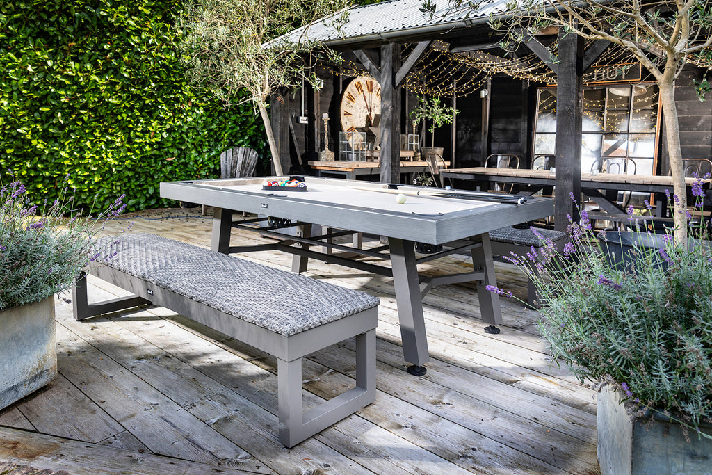 Bringing the fun and entertainment to your garden space, Crucible is a multiuse garden activity table that oozes innovation, has style in abundance and will be the entertainment hub of the garden. Attach the table tennis set for a fun game or two, or remove the table top reveal the pool table, when dining the equipment is neatly stored away within one of the benches.