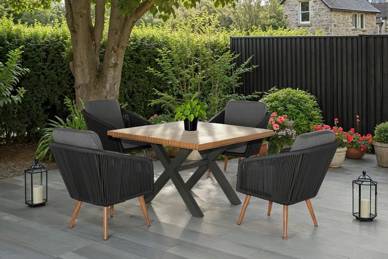 Perfect for patios, decking, or garden terraces, the Eden 4 Seat Square Dining Set combines practicality with timeless design – ideal for both everyday dining and relaxed outdoor entertaining.