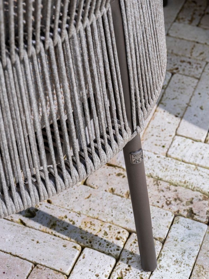 The Florence lounge chairs and sofa feature beautifully curved aluminium frames with detailed all-weather rope in the warm Terre tone — a refined neutral that complements any garden or terrace. Plush, weather-resistant cushions ensure luxurious comfort, creating an inviting space for socialising or unwinding outdoors.