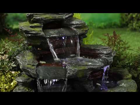 This nature-inspired water feature represents a beautiful mountain spring. It is shaped perfectly to allow the water to trickle down its front like a waterfall. It has an appearance of craggy moss visible on the edges.