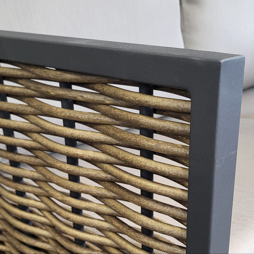 Langley has been created using a chunky 10mm raffia weave. Bordered with an Axalta® powder coated, all-weather aluminium frame and topped with deep seated cushioning. The deep back and spacious seats offer style and comfort in abundance.