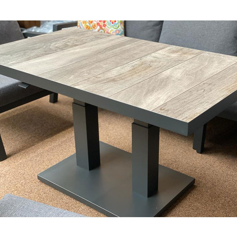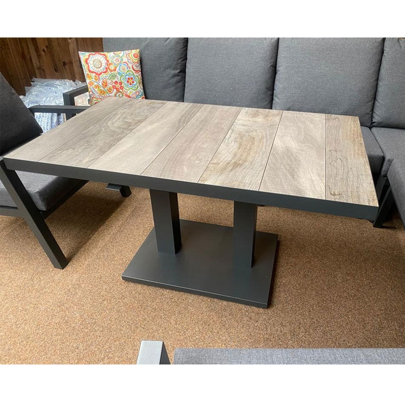 The Triton By Vila Rectangular Adjustable Table is a beautiful and sturdy piece of outdoor furniture that is designed to look great in any setting. The aluminium frames provide a durable base while the ceramic table top adds a touch of class. The table is adjustable with many different height levels, providing a comfortable and versatile way to dine or have a coffee. Whether purchased individually or in a set, it's a great addition to any outdoor area.