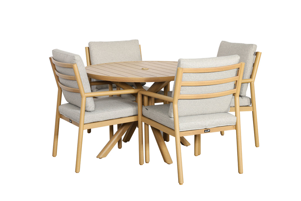 Transform your outdoor space into a haven of style and comfort with the Sahara 4 Seat Dining Set. This exquisite set is designed to elevate your dining experience with a perfect blend of elegance and sophistication.
