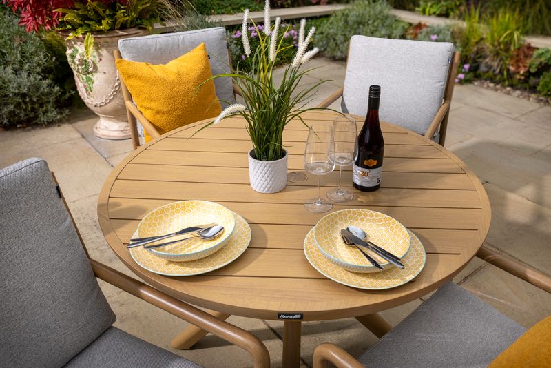 Embrace the outdoors, enjoy alfresco dining with family and friends, and create memorable moments with your loved ones. This outdoor dining set comes with a 2.5m Round Luxe Parasol and 15kg Concrete Base, with Fabric cleaner and protector included.
