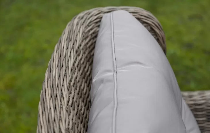 - Hand crafted half round/full round all-weather durable synthetic rattan weave.